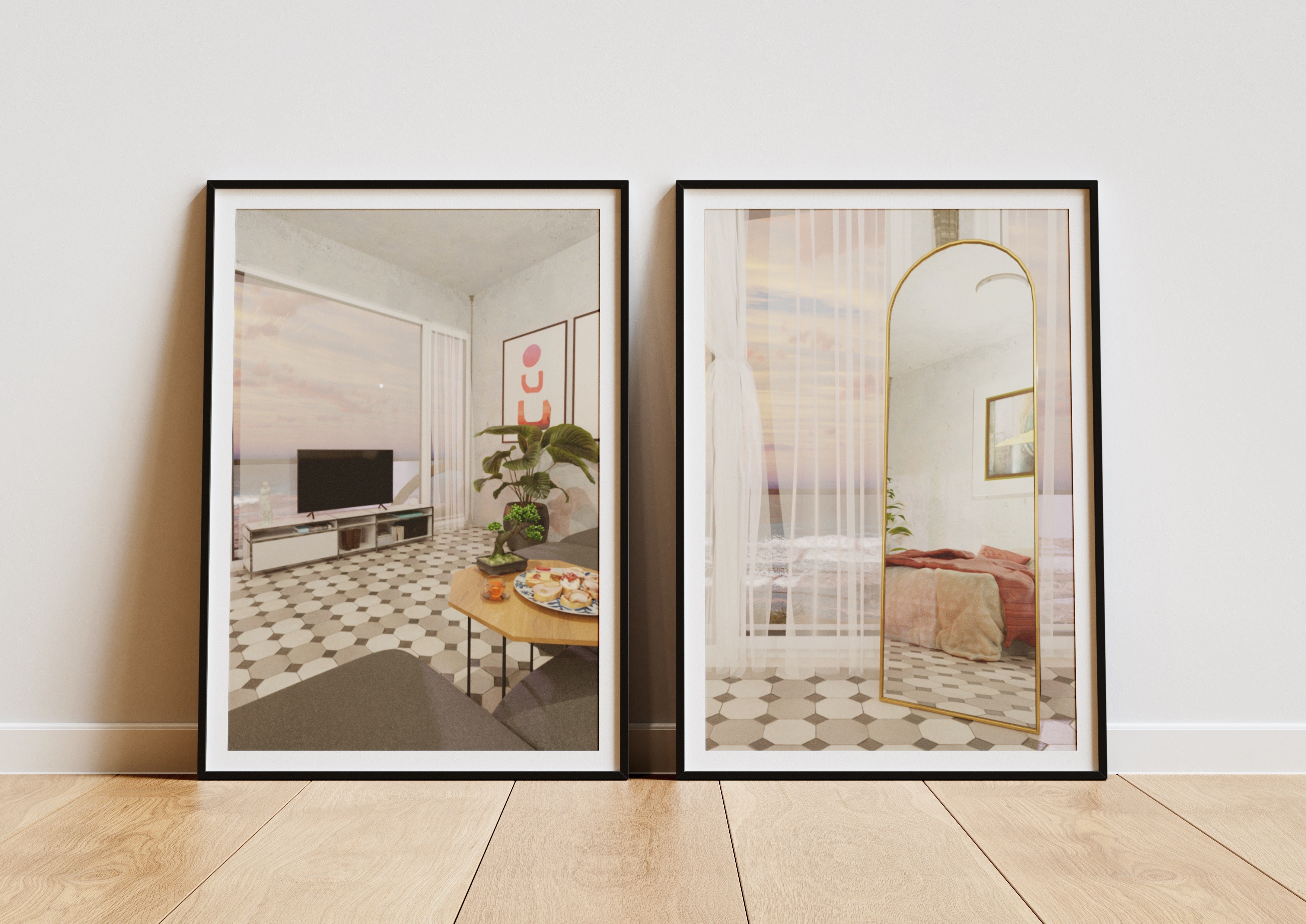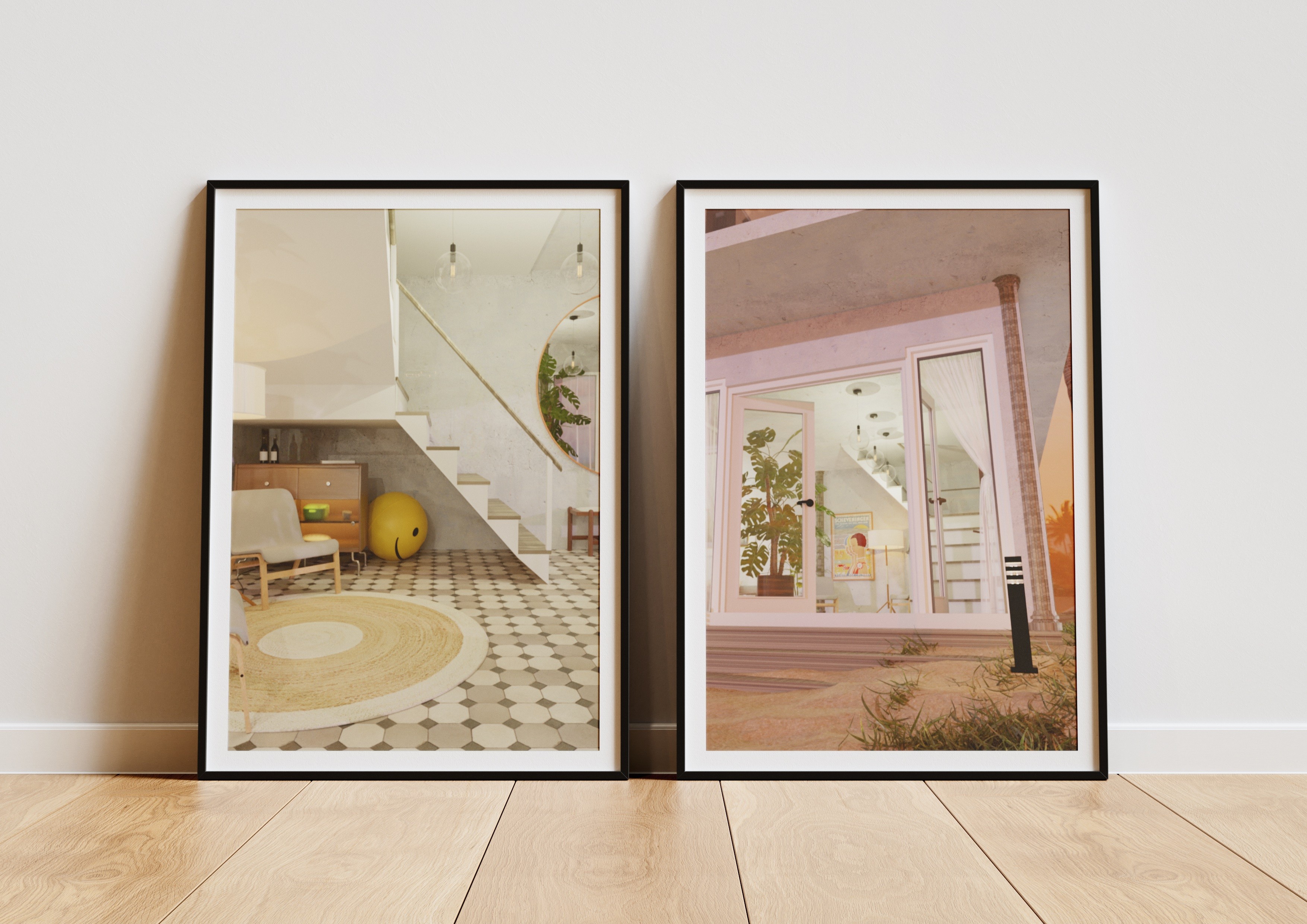Art Direction: Balanced surrealist tones with grounded architecture to invite reflection and exploration.